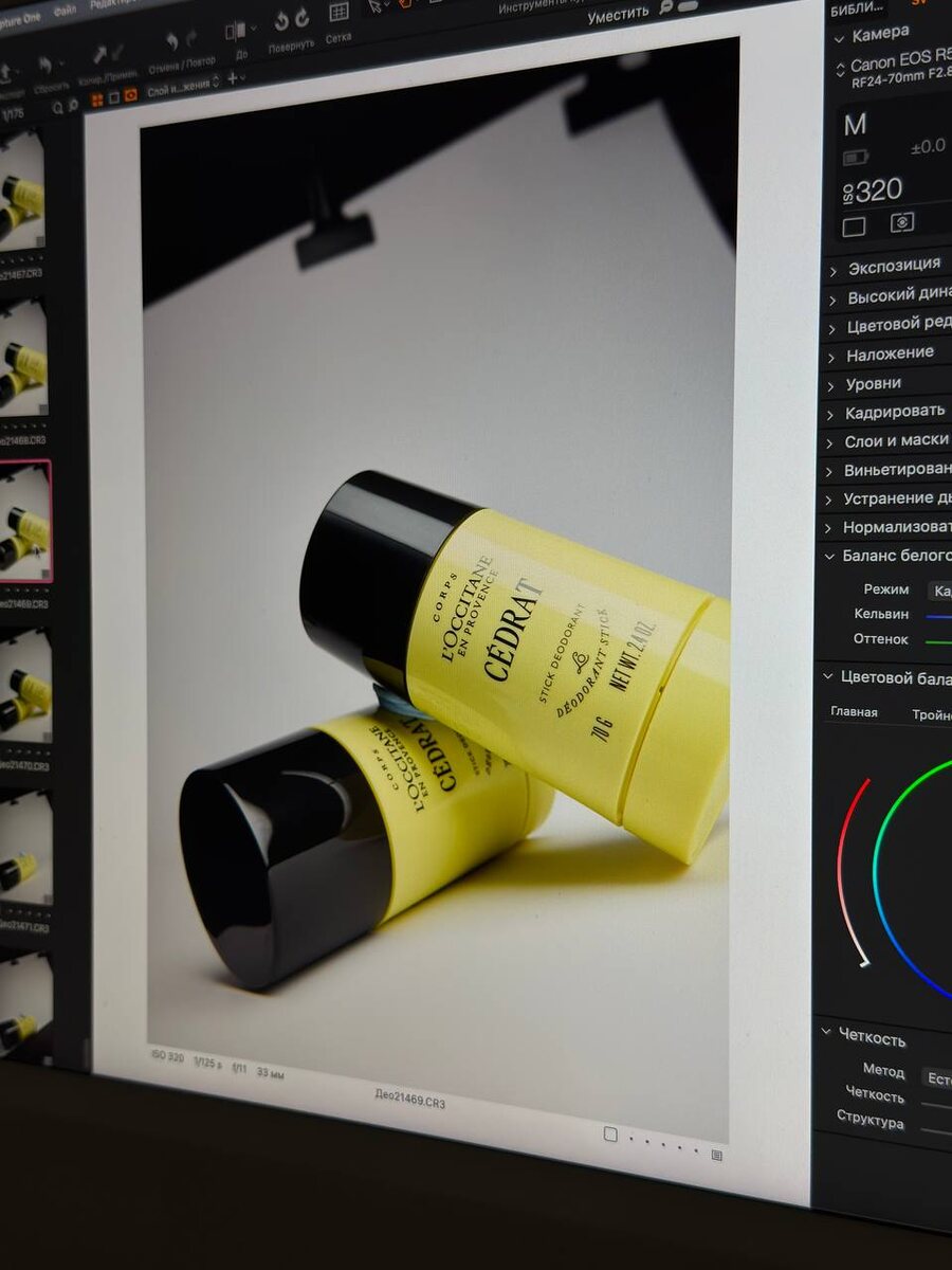 Сначала ставим стрип под верхнюю баночку: ищем положение с ровным четким бликом, снимаем Затем поворачиваем стрип под вторую баночку, так же ловим ровный четкий блик Склеиваем вместе. Дорисовываем фон по углам Готово 🧚 ФР 32 мм Итоговый результат скоро покажу #за_кадром