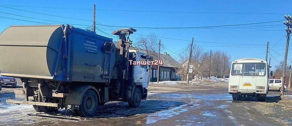На улице Гастелло в Тайшете сегодня днём столкнулись мусоровоз и автобус.