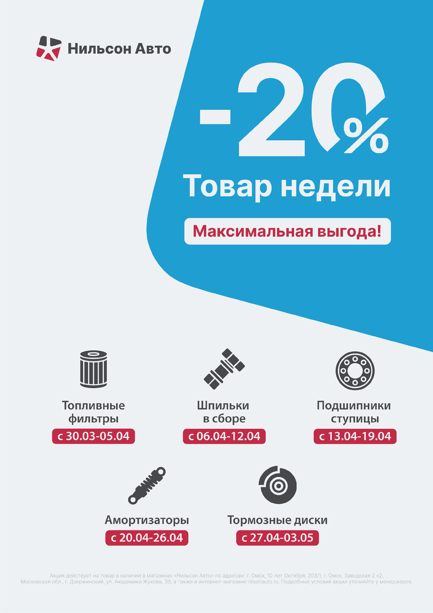 Скидка -20% на запчасти с 30.03 по 03.05 👇🏻 📌 В акции участвуют: