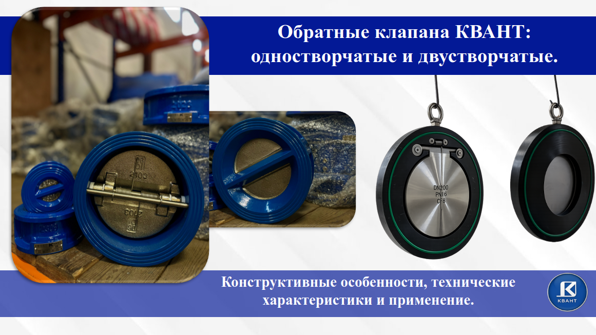 Линейка КВАНТ позволяет подобрать решение под разные задачи: от компактных двустворчатых клапанов для типовых инженерных систем до одностворчатых клапанов КВАНТ востребованых там, где требуется понятное и надежное техническое решение с практичным подбором материалов под рабочие условия. А значит, выбор может быть не просто “по каталогу”, а действительно под реальные условия работы оборудования и трубопровода.