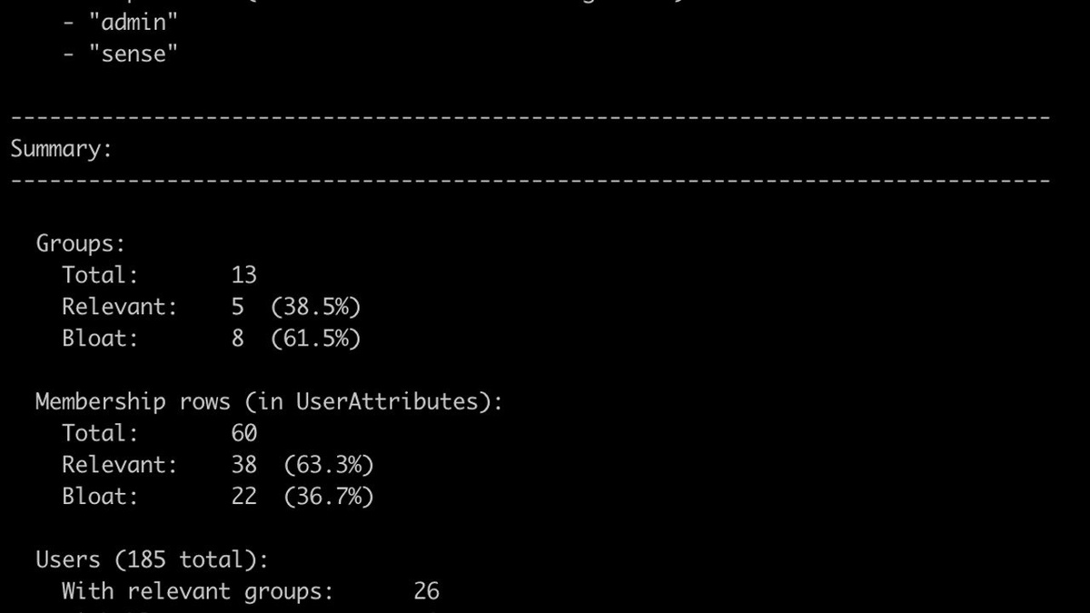 Первый показывает структуру и размер таблиц QSR, а второй выявляет бесполезные групповые членства, подтянутые из AD или LDAP. Это полезно, потому что избыточные данные о группах напрямую замедляют вычисление правил безопасности. Скрипты работают в режиме чтения и требуют только PowerShell Core 6.0 и клиента psql. Читать полностью @chernovdev