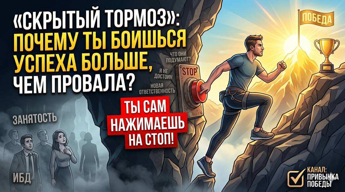 Ты когда-нибудь замечал странную закономерность? Как только в жизни наступает белая полоса — проект идет в гору, отношения налаживаются, ты начинаешь правильно питаться — внутри вдруг что-то «щелкает». Ты вдруг просыпаешь важную встречу. Устраиваешь ссору на пустом месте. Или просто «забываешь» сделать то, что обещало принести тебе прибыль. Ты называешь это невезением или усталостью. На самом деле — это самосаботаж. И ты делаешь это специально. У каждого из нас в голове стоит внутренний термостат счастья и успеха. Это уровень «допустимого благополучия», к которому ты привык с детства. Почему? Потому что успех — это неизвестность. А неизвестность для мозга — это угроза. 1. Страх «Чужого среди своих»