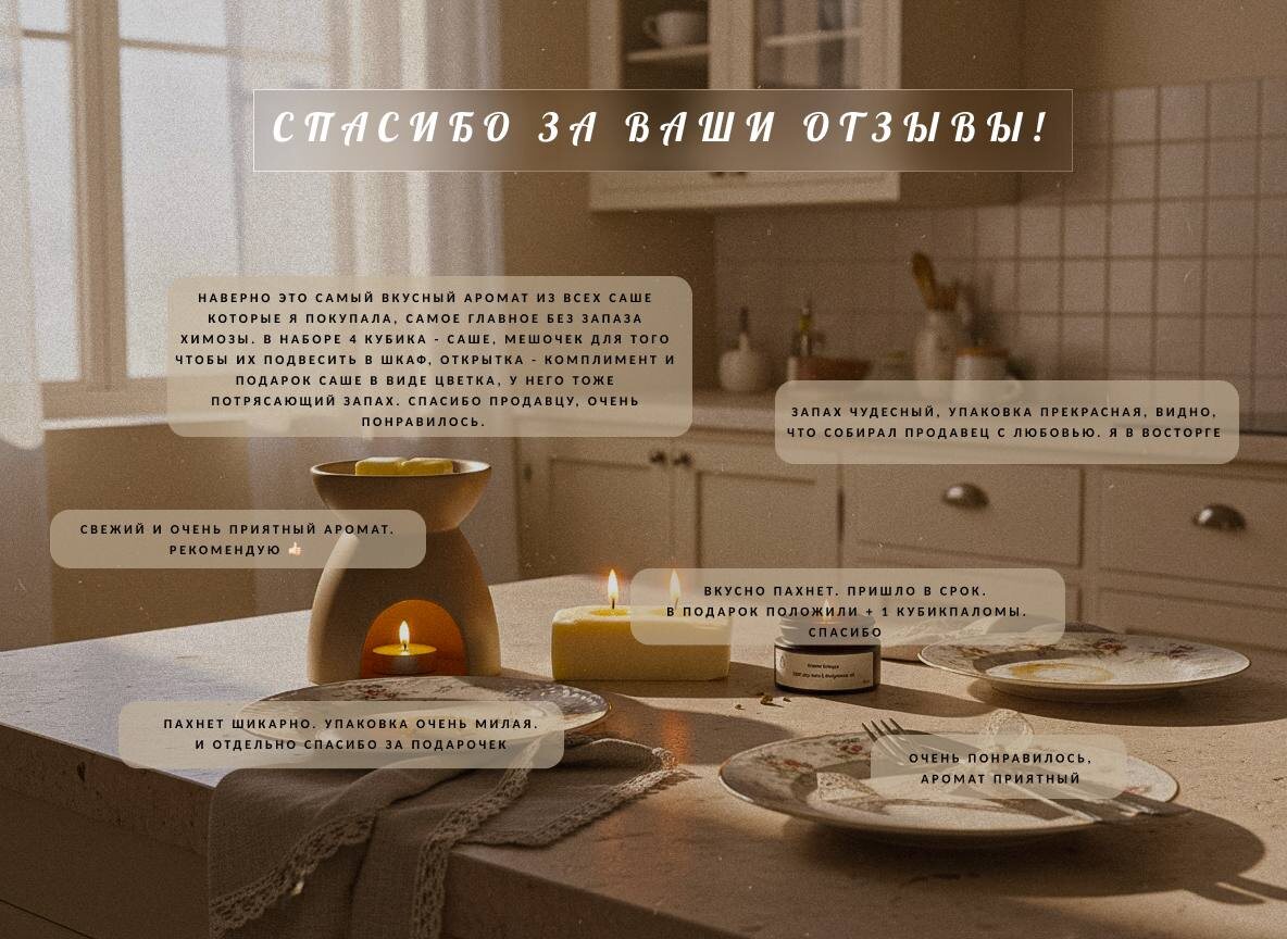 Мы очень ценим, когда вы делитесь своими впечатлениями. Тёплые слова радуют, а честные замечания помогают нам становиться лучше. Поэтому для нас важны любые отзывы — и хорошие, и с пожеланиями или замечаниями. Именно так мы можем расти и делать всё ещё лучше. Чтобы ваши сообщения не терялись, мы сделали отдельного бота для отзывов. Там нет спама — это просто место, где будут храниться ваши слова. Если захотите поделиться впечатлением — будем рады прочитать ❤️ Написать можно здесь - @Aiircandles_otzyv_bot или в директ @aiir_candles 💬 💙 Мы в ВК