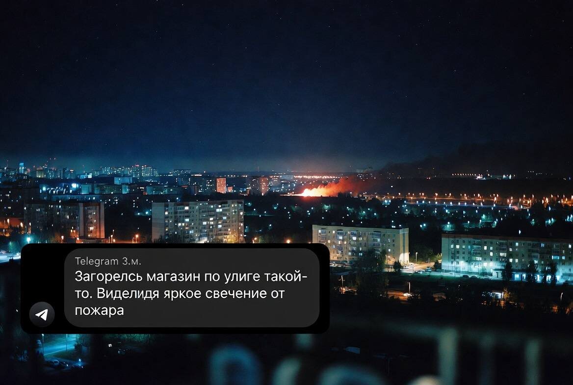 ) π± Π 3:07 Π² ΠΌΠ΅ΡΡΠ½ΠΎΠΌ ΡΠ°ΡΠ΅ ΠΠΊΠ°ΡΠ΅ΡΠΈΠ½Π±ΡΡΠ³Π° ΠΏΠΎΡΠ²Π»ΡΠ΅ΡΡΡ ΡΠΎΠΎΠ±ΡΠ΅Π½ΠΈΠ΅ ΠΎΡ ΠΌΡΠΆΡΠΈΠ½Ρ: Β«ΠΠ°Π³ΠΎΡΠ΅Π»ΡΡ ΠΌΠ°Π³Π°Π·ΠΈΠ½ ΠΏΠΎ ΡΠ»ΠΈΡΠ΅ ΡΠ°ΠΊΠΎΠΉ-ΡΠΎ. ΠΠΈΠ΄Π΅Π» ΡΡΠΊΠΎΠ΅ ΡΠ²Π΅ΡΠ΅Π½ΠΈΠ΅ ΠΎΡ ΠΏΠΎΠΆΠ°ΡΠ°Β». β ΠΠ°ΠΆΠ½ΡΠ΅ Π΄Π΅ΡΠ°Π»ΠΈ: β’ ΠΠΎΠ²ΠΎΡΡΡ Π½ΠΈΠ³Π΄Π΅ Π΅ΡΡ Π½Π΅ ΠΏΡΠ±Π»ΠΈΠΊΠΎΠ²Π°Π»Π°ΡΡ β Π½ΠΈ Π² ΠΎΠ΄Π½ΠΎΠΌ Telegram-ΠΊΠ°Π½Π°Π»Π΅, Π½ΠΈ Π² Π‘ΠΠ. β’ ΠΠ²ΡΠΎΡ ΡΠΎΠΎΠ±ΡΠ΅Π½ΠΈΡ Π½Π° ΡΠ²ΡΠ·Ρ Π½Π΅ Π²ΡΡ