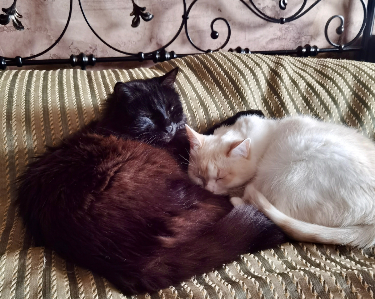 Но ничего, мы с сыном вполне справлялись. Приходилось и лечить, и кормить, и убирать, и развлекать. Черного котика уже нет с нами, а вот белый старичок ещё скрипит)