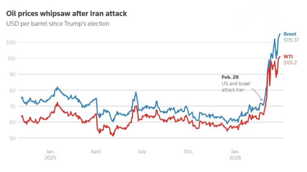 Нефть марки Brent установила новый максимум за последнее десятилетие на фоне войны в Персидском заливе. Фьючерсы на Brent утром подскочили до $116,51 за баррель, прибавив 3,5%, тогда как американская WTI торговалась на уровне $102,14 (+1,87%). Как отметила основательница Vanda Insights Вандана Хари, рынок фактически перестал верить в быстрое дипломатическое урегулирование, несмотря на заявления Дональда Трампа о переговорах с Ираном. По её словам, инвесторы готовятся к дальнейшей военной эскалации, что продолжает подталкивать котировки вверх. В результате Brent подорожала уже на 59% только за этот месяц, что стало самым резким месячным скачком и превзошло даже рост времён войны в Персидском заливе 1990 года. Ранее Трамп честно рассказал, как строит внешнюю политику США.