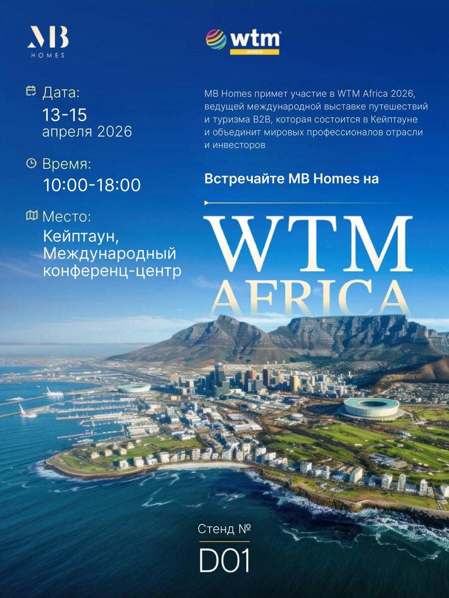 🌍 С 13 по 15 апреля мы будем в самом центре Кейптауна, в выставочном комплексе Cape Town International Convention Centre, где собираются ключевые игроки рынка, инвесторы и девелоперы со всего мира. Это возможность: ✨ Лично познакомиться с командой MB Homes; ✨ Узнать больше о проектах на Занзибаре; ✨ Обсудить партнёрство и получить актуальные предложения. 📍 Стенд D01 🕙 С 10:00 до 18:00 До встречи на WTM Africa — месте, где рождаются новые возможности и сильные партнёрства 🤝 #MBHomes #MBHomes_новости #MBHomes_team #занзибар