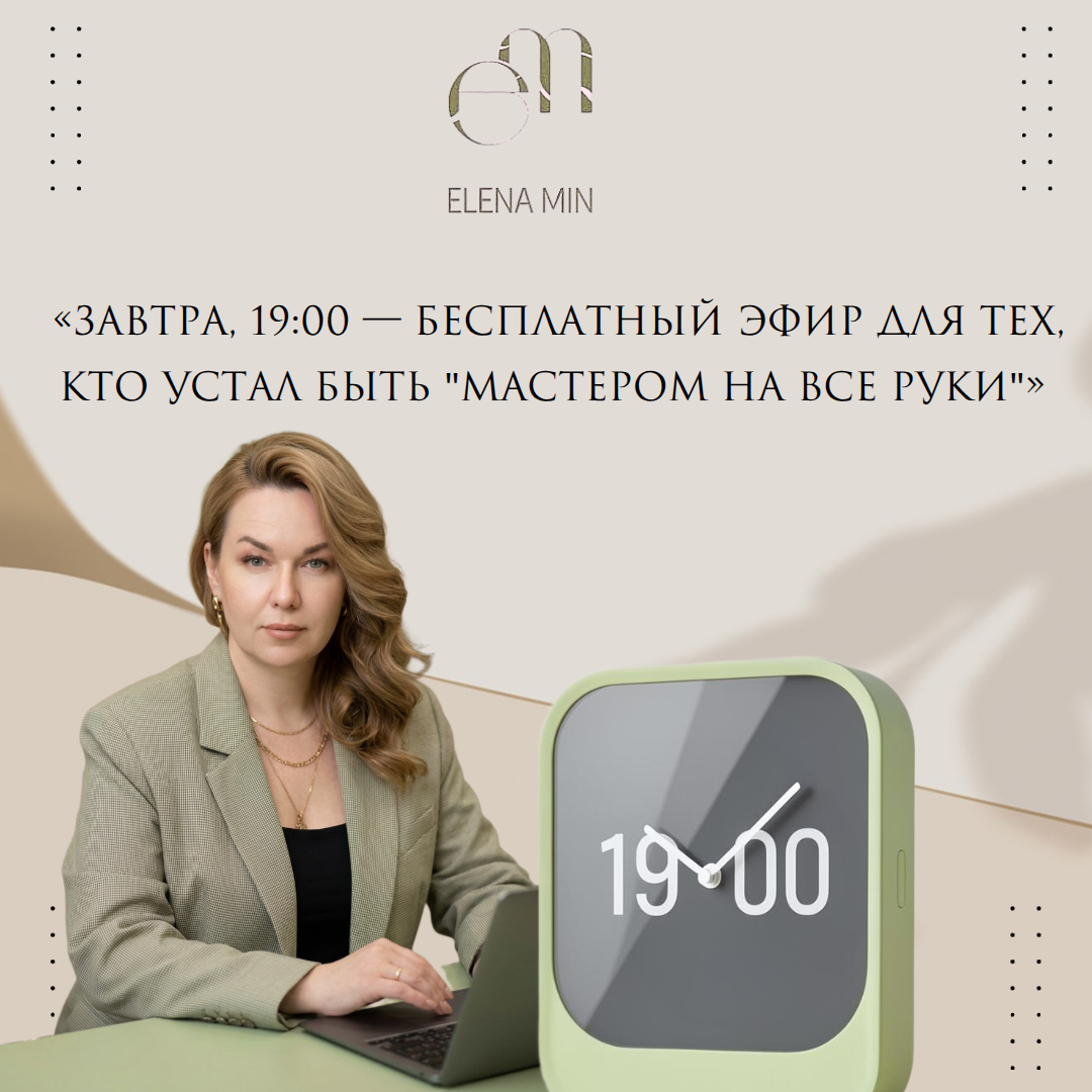 ➡️Тема эфира: «Как перестать быть "универсалом" и стать экспертом, за которым выстраиваются в очередь». Разберём: ✅ Почему клиенты не видят разницы между тобой и соседним салоном. ✅ Как поднять чек на 50-70% без повышения цен. ✅ Первые шаги к чистому нюансу, который держится месяц. Девочки, жду от вас мои дорогие ❤️🤗 ☑️ Подписаться на новости Telegram : https://t.me/ElenaMin1