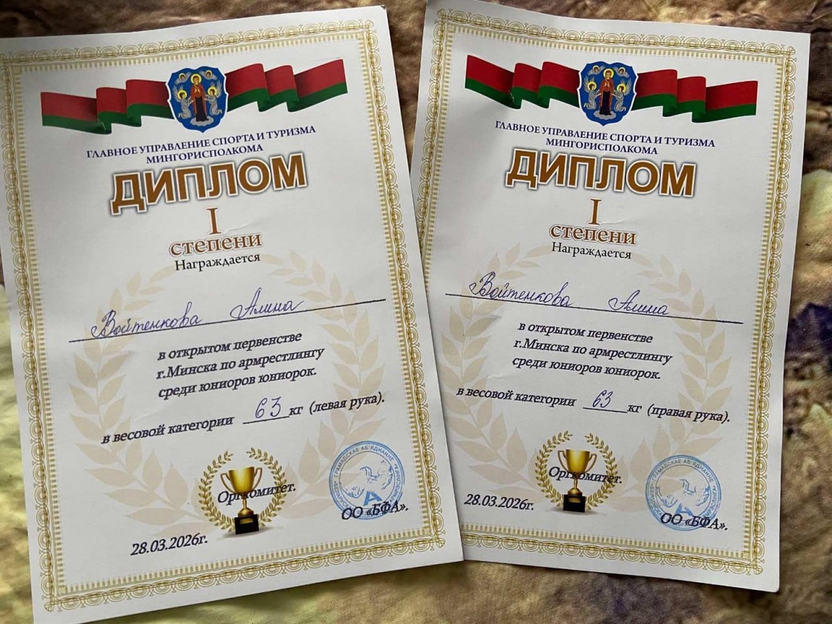 📍27–28 марта на базе ГУО СШ № 226 г. Минска проходило первенство Минска по армрестлингу. ✅ В соревнованиях успешно выступили студентки 2 курса факультета физической культуры. 🥇Алина Войтенкова заняла два первых места: 1 место в борьбе на левую и 1 место в борьбе на правую руку (весовая категория 63 кг). 🥈Валерия Рыбак в весовой категории 63+ кг заняла 2 место в борьбе на левую и 3 место в борьбе на правую руку. 🖇 Девушки тренируются в группе ПСМ по армрестлингу у старшего преподавателя кафедры спортивных дисциплин Геннадия Казимирского.