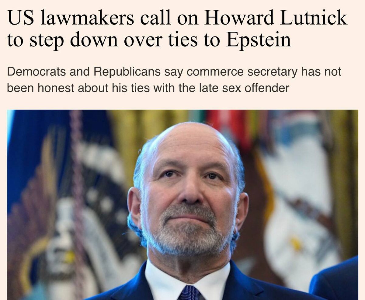 ⚡️ В США разгорелся настоящий скандал! Министра торговли Говарда Лютника требуют отправить в отставку из-за его "дружбы" с Эпштейном