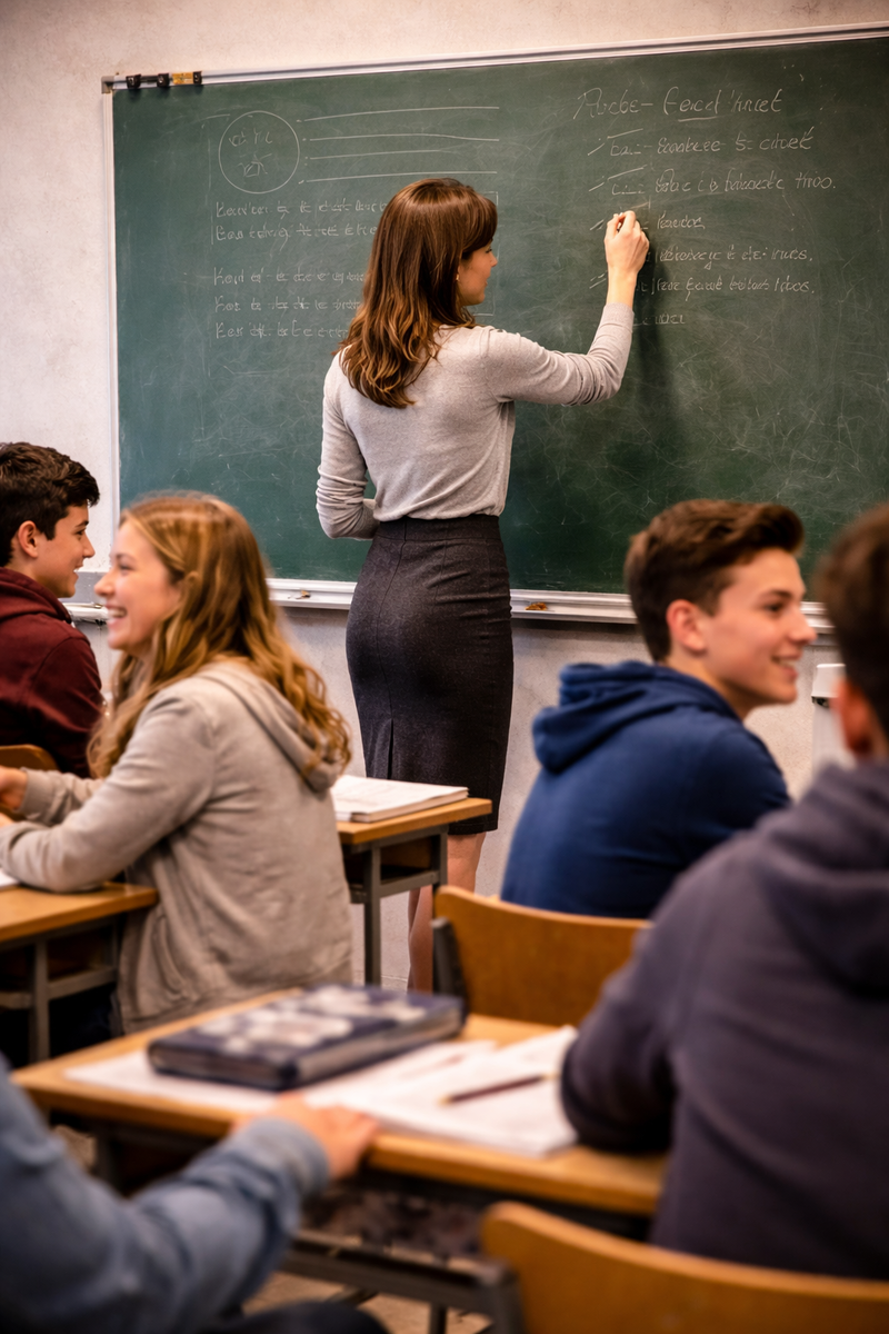 — Так… — она на секунду остановилась, вдохнула глубже. — Давайте всё-таки начнём. Открыли тетради, запишем тему.