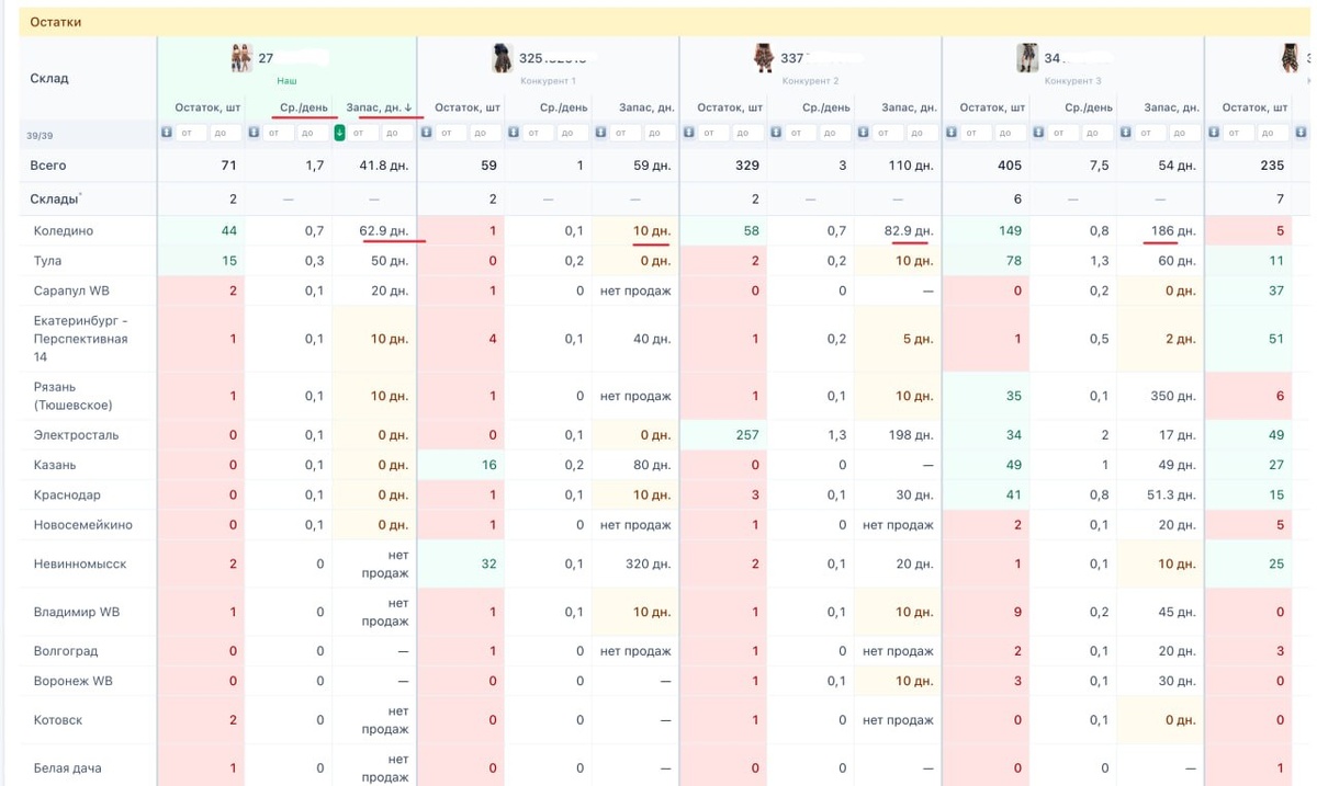 🪅 Расчетный СРМ конкурента и скорость продаж его артикулов по каждому складу в отчете Сравнение Артикулов в РМ