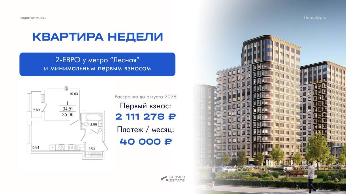 🏆 Квартира недели: рассрочка с минимальным первым взносом у метро «Лесная
