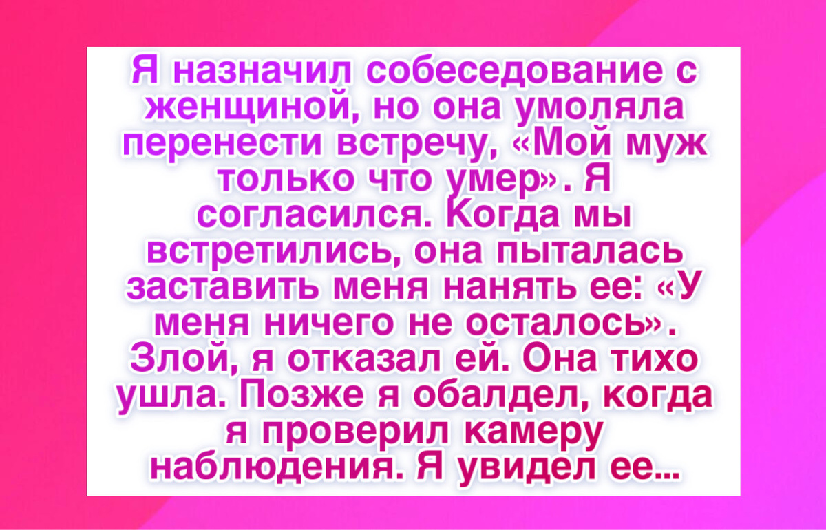 “Я назначил собеседование женщине, но она попросила перенести встречу и сказала, что у нее только что умер муж. Я согласился. Когда мы встретились, она попыталась давить на жалость, сказала, что у нее ничего не осталось. Я разозлился и отказал ей. Она тихо ушла. Позже я посмотрел запись с камеры и увидел, как она забирает из холла троих детей. Старшему было примерно девять лет, как моему сыну. Меня накрыла волна вины. Она только что потеряла мужа и держалась ради детей, у нее даже не было времени нормально пережить горе. Потом я еще раз посмотрел ее резюме и понял, что она полностью подходит для этой работы. Я сразу позвонил ей и взял на работу. В итоге она оказалась самым квалифицированным сотрудником из всех, и мы работаем вместе уже десять лет.”