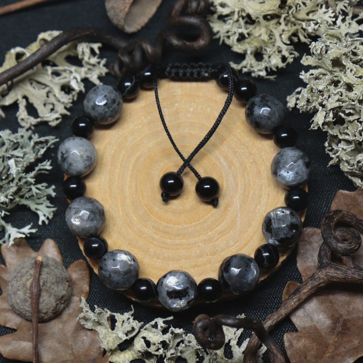 Браслет "Северное небо" из ларвикита и черного агата