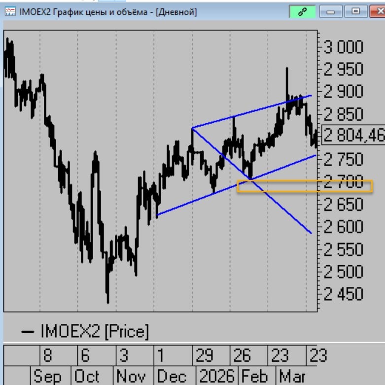 ➖Из минусов: Радоваться отскоку рановато. На 3% рынок всё ещё могут продавить спокойно. ➕Из плюсов: Когда цена немножко не доходит до линии тренда в подобном паттерне и бьют навеерх, это что-то вроде собаки баскервиллей в классическом тех. анализе. Но это надо ходя бы на 2850 ударить. Но в любом случае потенциал вниз уже достаточно ограничен. А наверх если какие то хорошие новости или техническое давление прекратится можно далеко ехать. Так что ситуации более менее нормальная. Хотя от рынка все устали конечно за последние месяцы.