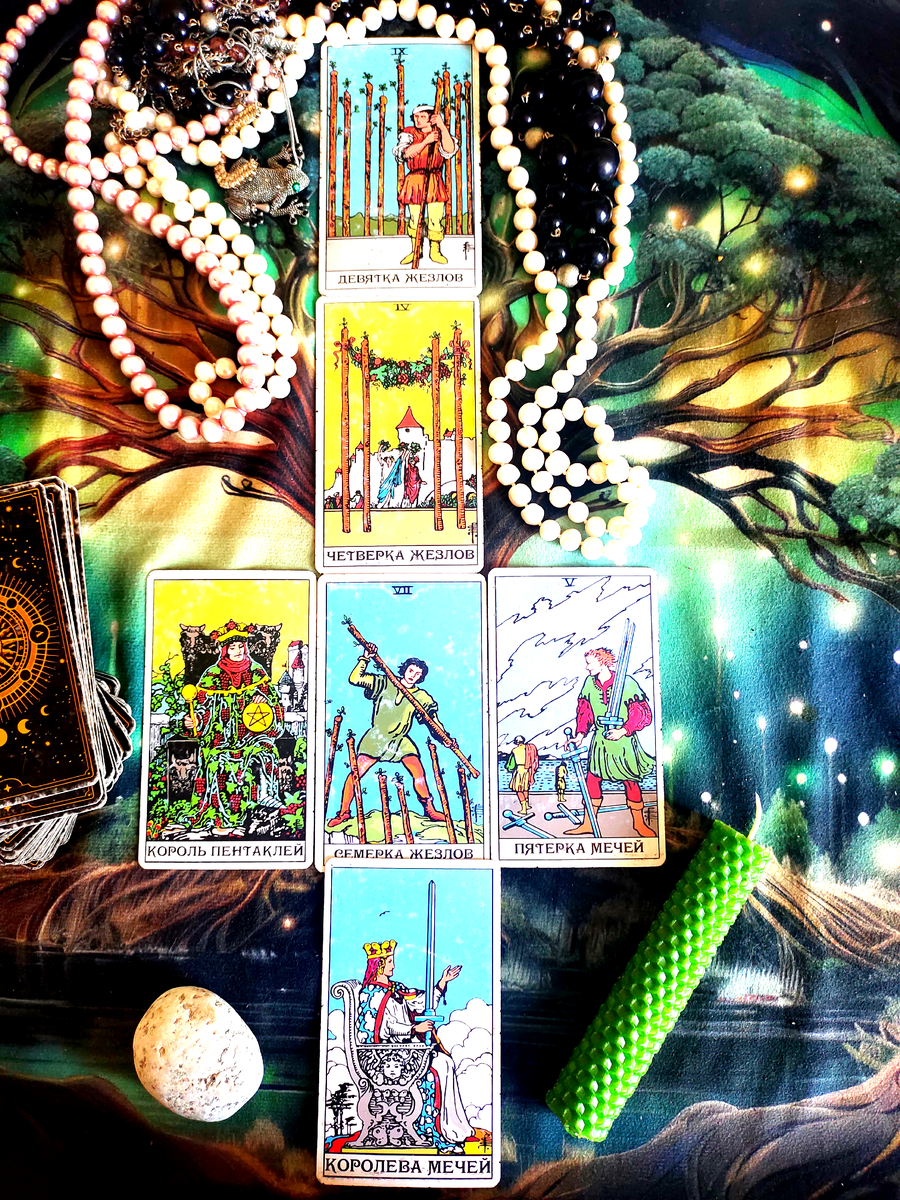 Ваша задача, не позволить конфликтам и напряжению выбить вас из равновесия. Используйте свою природную выносливость, чтобы пройти через вызовы. В рабочих спорах помните: иногда мудрость, не в победе, а в сохранении ресурсов. А в конце недели ваша способность к ясному, честному анализу (Королева Мечей) станет вашим главным союзником, который поможет расставить всё по местам и двигаться дальше.