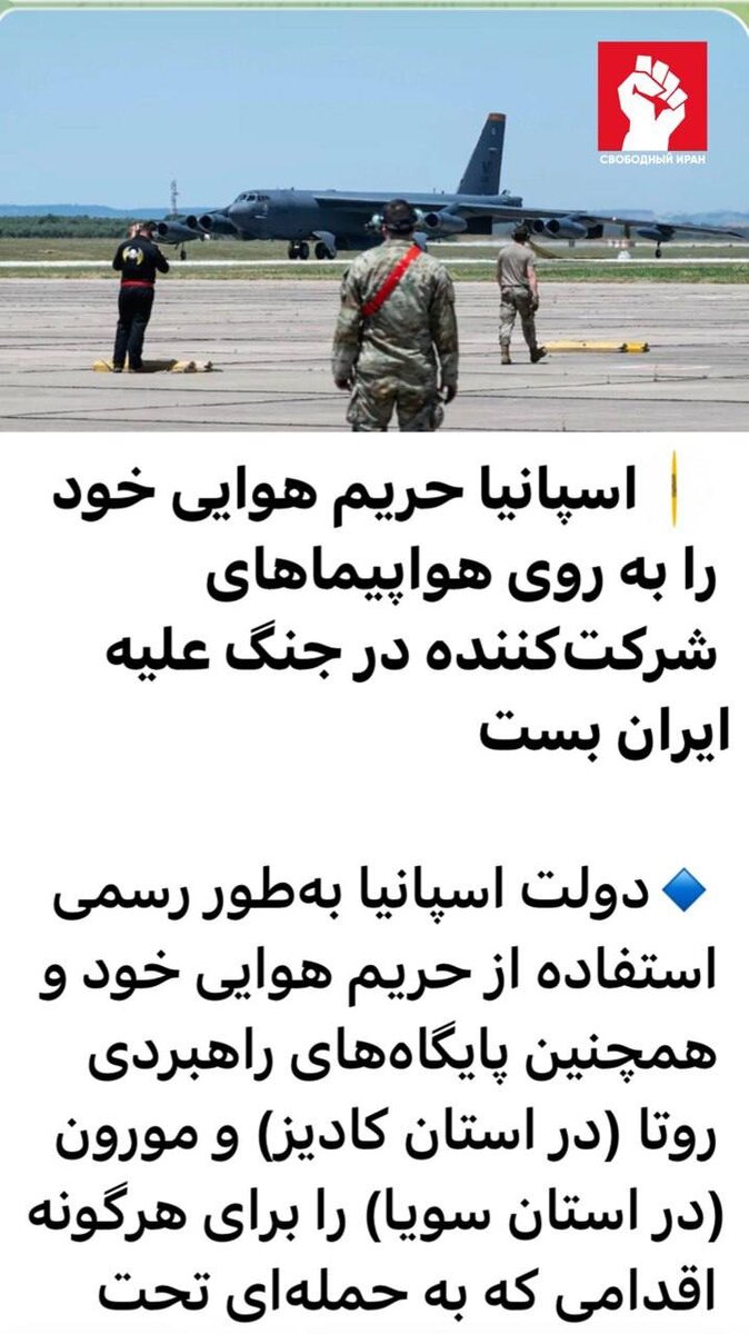 ✈️🛑 El Pais пишет, что Мадрид запретил использование баз Рота и Морон-де-ла-Фронтера для истребителей и заправщиков, задействованных в атаках, а также закрыл воздушное пространство для американских бортов из третьих стран вроде Британии и Франции. Исключение — только экстренные случаи. При этом остальная военная логистика по соглашению с США остается в силе, включая поддержку примерно 80 тысяч американских военных в Европе. Испания явно решила провести границу там, где начинается прямое участие в ударах по Ирану. Подпишитесь на канал