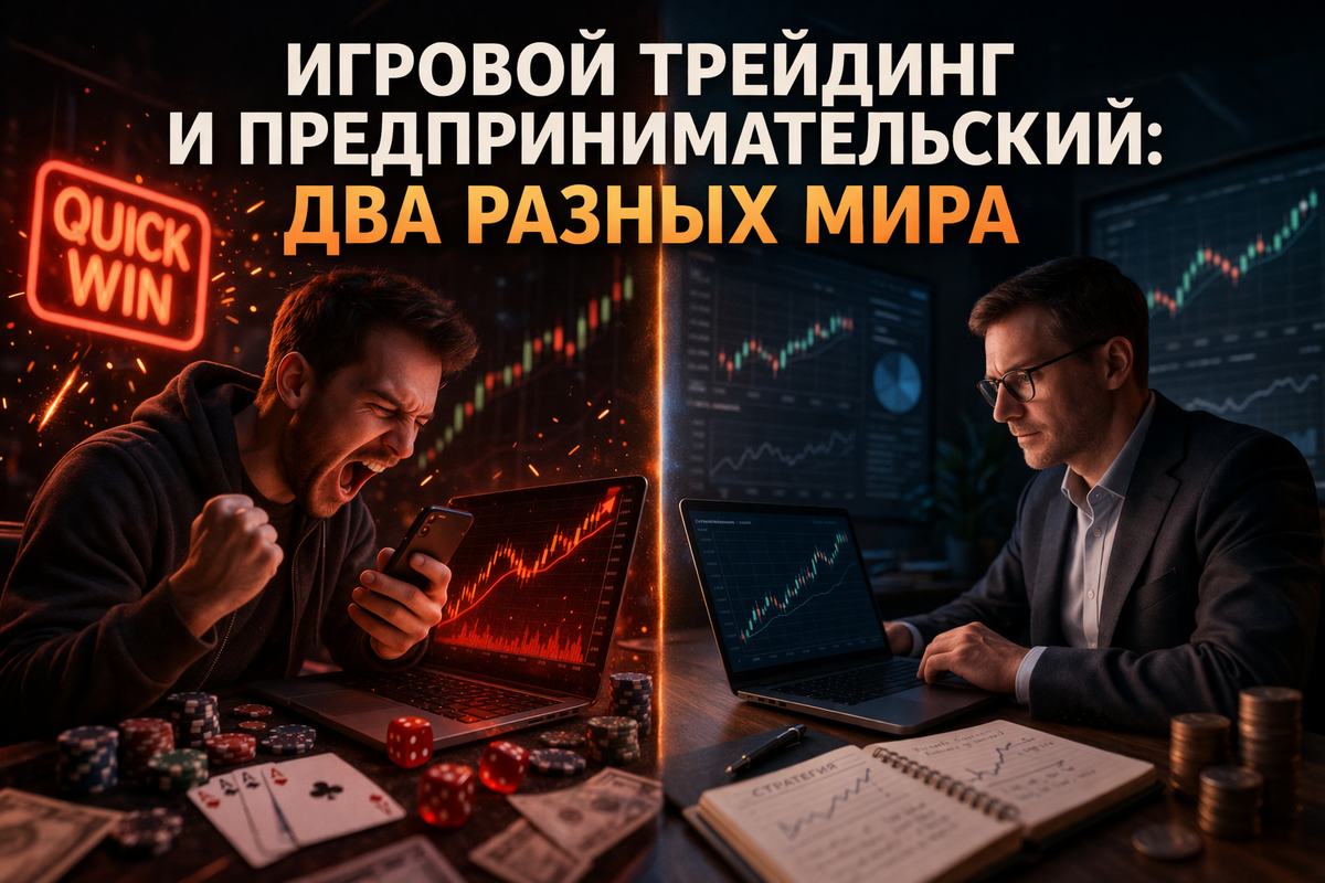 И вот здесь очень быстро выясняется, что внешне похожие люди на рынке на самом деле живут в двух совершенно разных мирах. Один мир — это игровой трейдинг. Другой — предпринимательский.