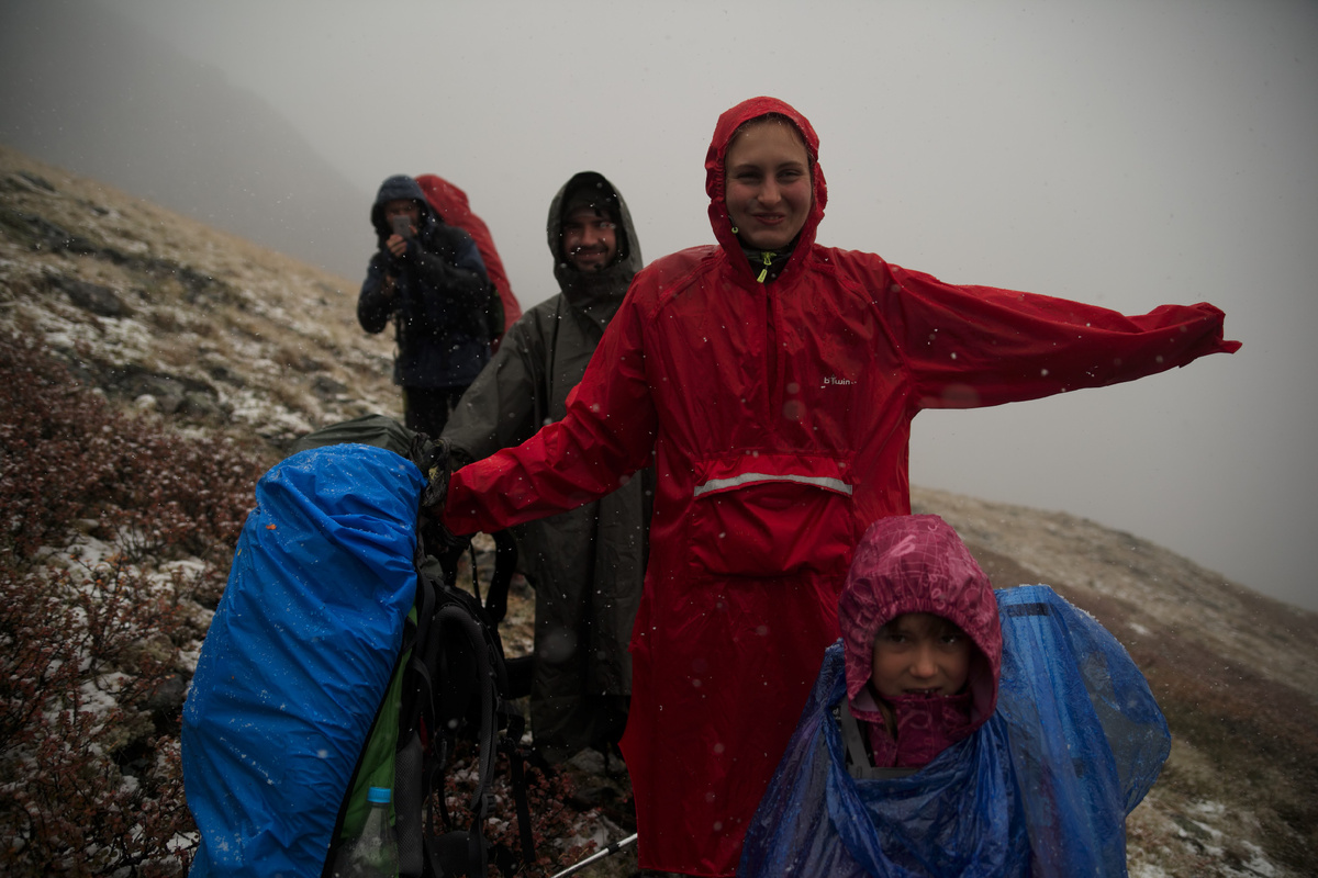 Мы попали в пургу, в снегопад и ночевали в снегу на высоте. Температура в нашем походе почти никогда не поднималась выше +10, а чаще была около 0. А я, доверившись этим словам, взяла спальники на +9 и для себя, и для ребенка.
