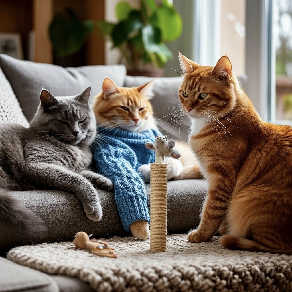 Можно разделить места отдыха: например, разместить на подоконнике несколько лежанок так, чтобы кошки могли лежать рядом, но не соприкасаться.