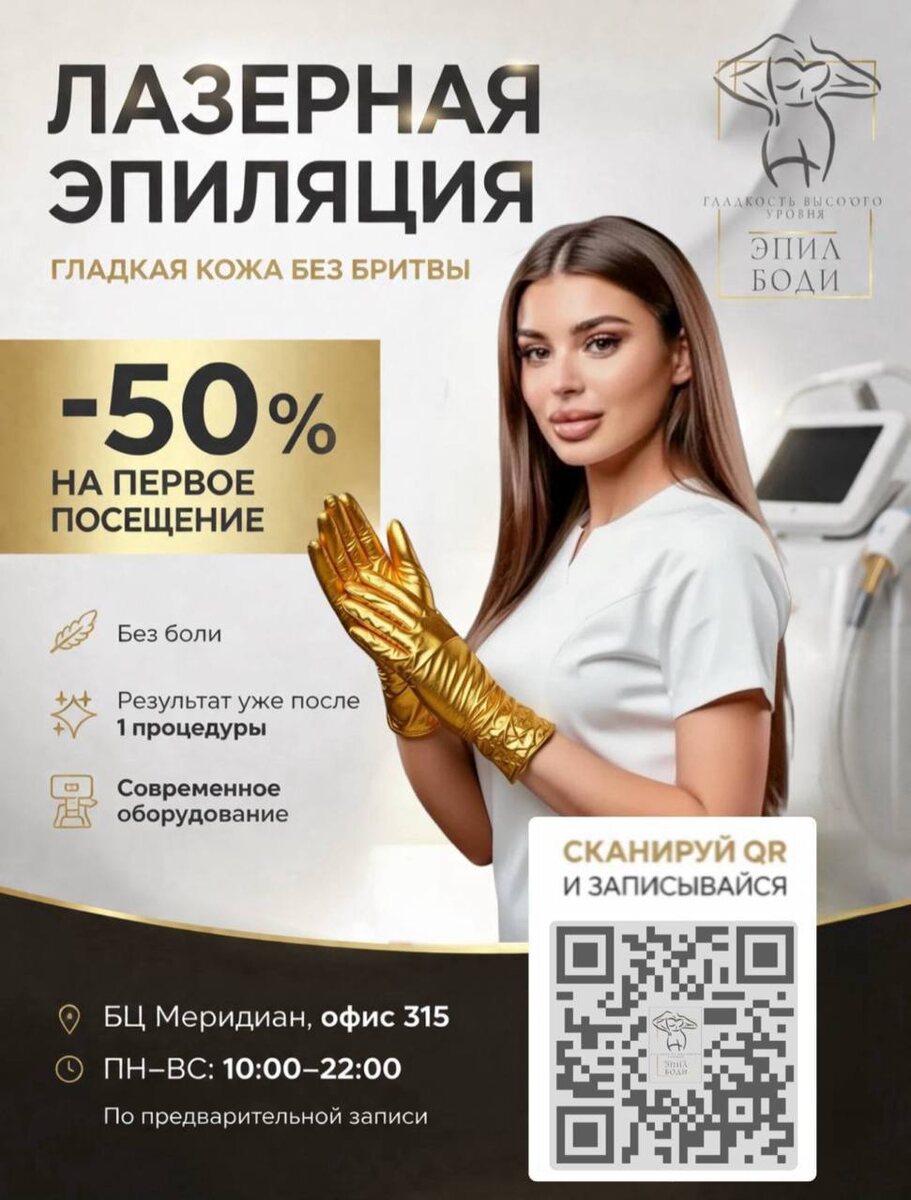 Здравствуйте! Меня зовут Екатерина 🤍 Я — квалифицированный косметик-эстетист с опытом работы в сфере красоты. Приглашаю вас на процедуру лазерной эпиляции ✨ Работаю на премиальном диодном лазерном аппарате, который обеспечивает заметный результат уже после первых процедур и максимальный комфорт во время сеанса. 🔥🔥🔥🔥🔥🔥 Скидка -50% на первое посещение Почему стоит выбрать именно меня? ✔ Профессиональный подход и опыт ✔ Современное премиальное оборудование ✔ Индивидуальный подбор параметров под ваш тип кожи и волос ✔ Комфортная процедура с системой охлаждения ✔ Бережное отношение к коже Лазерная эпиляция — это: 💫 Гладкая кожа без раздражения 💫 Без вросших волос и порезов 💫 Замедление роста волос 💫 Долговременный результат Я создаю комфортную атмосферу, чтобы вам было спокойно и приятно на процедуре 🤍 По программе лояльности: 💛3я процедура со скидкой 10% 💛7я процедура со скидкой 15% 💛10я В ПОДАРОК 🎁 📩 Принимаю по адресу: Санкт-Петербург, метро Московская, Ленинский