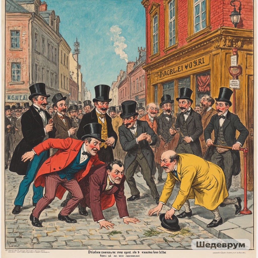 Купец Ермолай Фомич, выходя из трактира, пытается надеть шапку на городового.