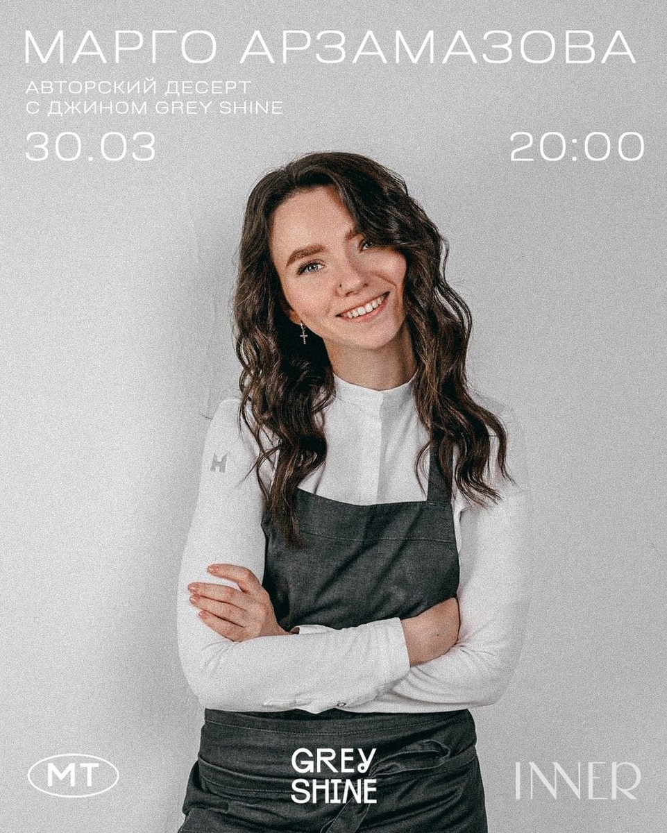 На этот раз не барный, а кондитерский. В гости приезжает шеф‑кондитер из Петербурга — Марго Арзамазова: 10 лет в профессии, призёр чемпионата России, с опытом работы в Pinch, Dreamteam, Veter (и других проектах в Петербурге и Москве). С октября 2025 года Марго является бренд‑шеф‑кондитером ресторанов Алексея Алексеева: iNNER, Futurist, Itameshi. В этот вечер Марго представит специальный десерт с джином Grey Shine. 😄 Мероприятия Нижний Новгород. Я местный! 📱 Telegram | 📲 MAX