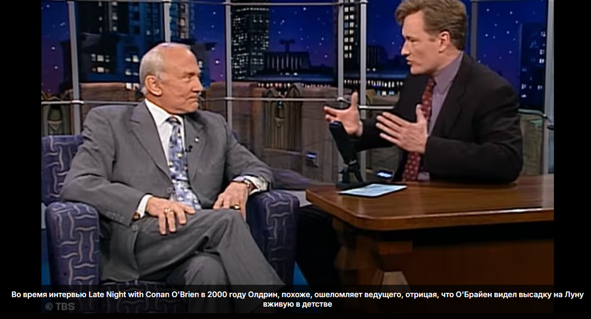 Афера США с опереточным полетом на Луну будоражит публику уже полстолетия. Наивные свято в нее верят, скептики сомневаются. Среди последних оказался и Баз Олдрин, участник той экспедиции. В 2000 г. в интервью, на замечание «мы все помним ту трансляцию», Олдрин сказал: Не было никакой телетрансляции, вы смотрели анимацию. Тогда он еще не отрицал самого «факта» высадки, но однозначно заявил, что та «телетрансляция», которую якобы смотрели полмиллиарда человек[1], оказалась профанацией их доверчивости, имитацией, снятой в студии. Зато в 2015 г., в ответ на детский вопрос «почему больше не возвращались на Луну?», он прямо ответил: Потому что мы туда не летали, так оно и было. Можете себе представить, Гагарина, говорящего, что он не был на околоземной орбите? Или Леонова, заявляющего, что никогда не выходил в открытый космос?