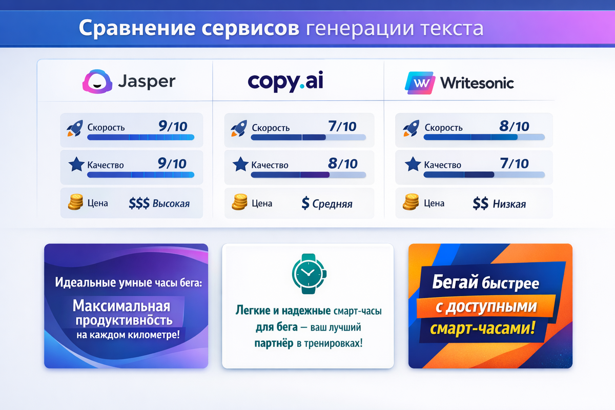 Забудьте о «страхе чистой страницы». Эти инструменты создают заголовки, описания и целые посты, которые конвертируют. Разбираем плюсы, минусы и кому что подходит. Вы пишете пост для соцсетей, а в голове — пустота. Нужно 10 вариантов заголовков для лендинга, а креатив на нуле. Нейросети-копирайтеры решают эту проблему мгновенно. Но какой инструмент выбрать? Мы протестировали трёх лидеров рынка AI-копирайтинга: Jasper, Copy.ai и Writesonic. Рассказываем, чем они отличаются и кому подойдут. 1. Jasper (бывший Jarvis) — король длинных текстов 2. Copy.ai — идеальный для заголовков и коротких текстов 3. Writesonic — универсальный солдат с мощным русским модулем Сравнительная таблица: Какой выбрать? Совет: Ни один AI-копирайтер не заменит редактора. Всегда проверяйте факты, адаптируйте тон под свой бренд и добавляйте «человеческие» детали. ИИ — это черновик, который вы доводите до ума. Вопрос для комментариев: