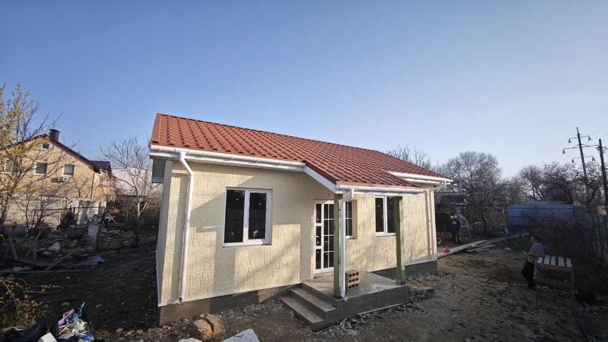 Добрый день, друзья! Как только прошли дожди и всё просохло, приступили к отделке очередного дома, построенного нами в Севастополе. Заказчик выбрал в качестве отделочного материала проифасадные плиты. Производится этот материал в Севастополе. армированная песко-цементная смесь, в виде различных узоров наносится на пенополистирол или фасадную вату на заводе. Остаётся только приклеить и прикрутить к фасаду, герметезировать швы и окрасить. Что мы и сделали. Результат на фото. По вопросам просчётов стоимость строительства, проектирования и просто задать вопросы, звоните и пишите +79782617393