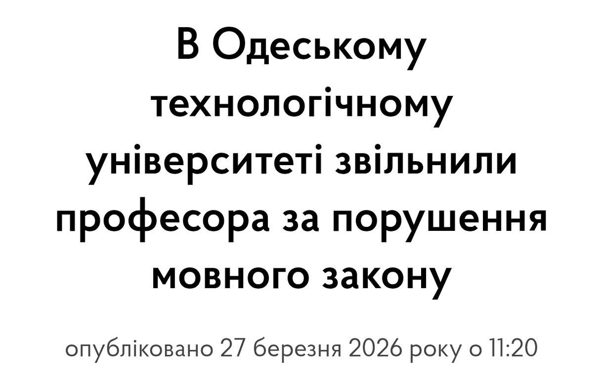 В Одессе профессора уволили из университета за русский язык. Один из студентов пожаловался, что преподаватель раздал экзаменационные билеты на русском и общался со студентами на том же языке. Нарушение зафиксировано. Сам профессор объяснил ситуацию без всякой политики, что, мол, подвёл компьютер, пришлось срочно использовать старые материалы, чтобы не сорвать экзамен. Да и отвечал он на том языке, на котором к нему обращались, чтобы просто нормально провести занятие, а не устраивать языковой эксперимент в стрессовый момент. Однако объяснения никого особенно не заинтересовали. После проверки составили протокол за нарушение языкового закона, и преподавателя уволили. 📱Подписаться ✉️Обратная связь 🔼 Boost нашего канала🔼 📱Вконтакте 📱Одноклассники 📱Дзен