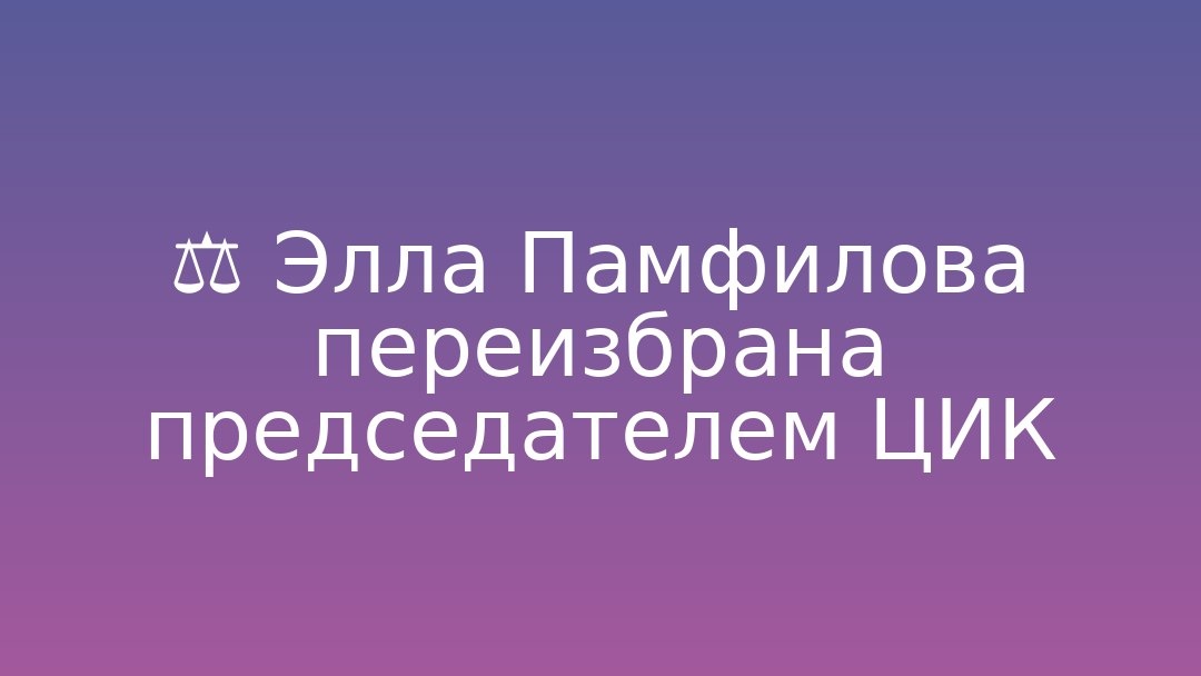 На первом заседании ЦИК нового состава председателем комиссии единогласно на пять лет избрана Элла Памфилова