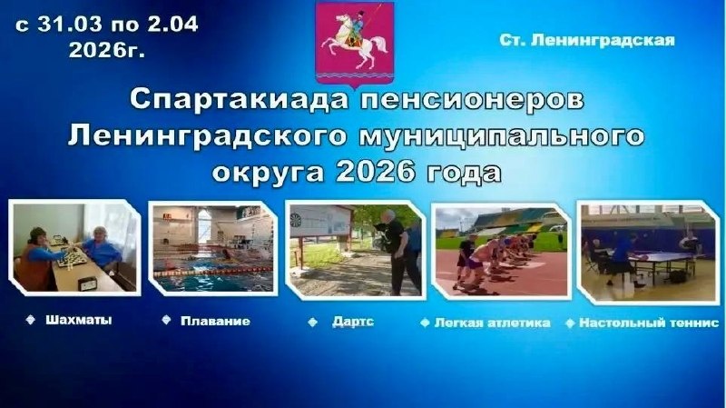 К участию приглашаются активные и энергичные жители. Соревнования проводятся в двух категориях: мужчины 60 лет и старше, а также женщины 55 лет и старше. В программе спартакиады: ▫️Плавание - 31 марта в 10:00, СШ «Акватика», ул. Ленина 59 А ▫️Дартс, шахматы, лёгкая атлетика - 01 апреля, СШ «Виктория», ул. 417 Дивизии 23 ▫️Настольный теннис - 02 апреля в 10:00, СШ «Лидер», ул. Ленина 96Б К участию допускаются лица предпенсионного и пенсионного возраста, имеющие постоянную или временную прописку на территории Ленинградского округа. По всем вопросам обращайтесь по телефону 8(86145)3-82-00. 📲 Ленинградский округ в МАХ