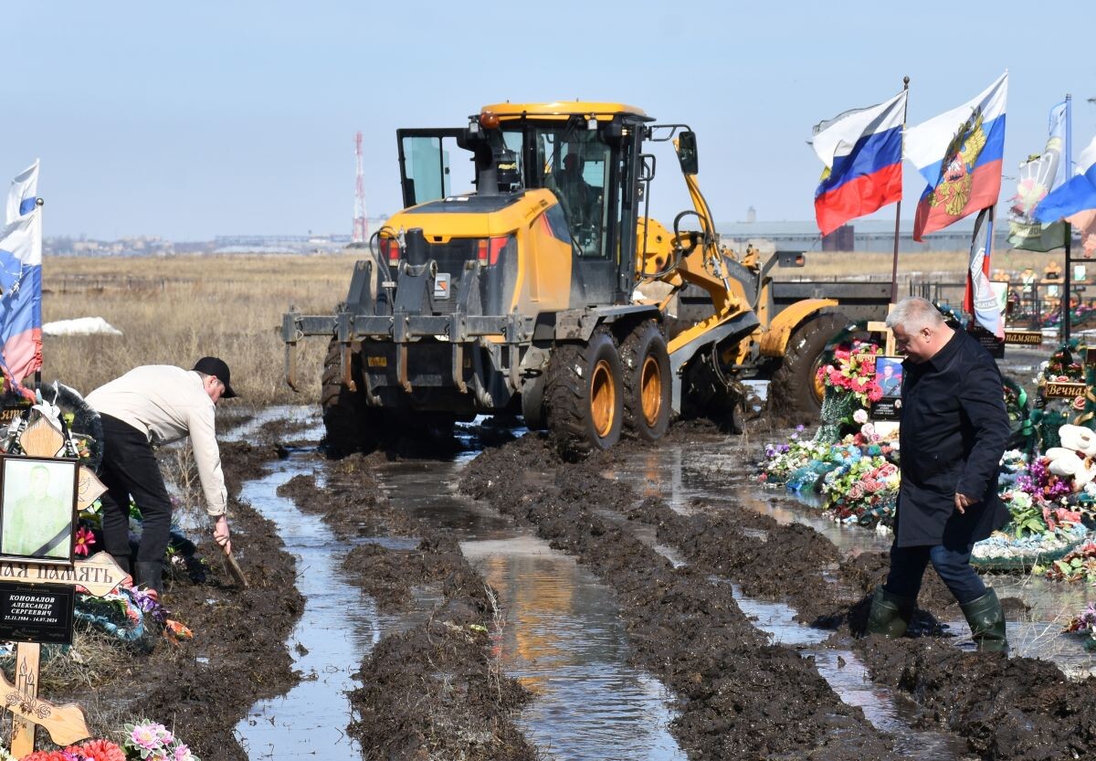 https://max.ru/join/5Puxq1N1DlFUCgv8zu_3aDxJeZGhHjeN1PJvu8hcDHg В зоне затопления паводковыми водами на кладбище оказалась и Аллея Славы, где захоронены участники СВО. Для устранения последствий на кладбище оперативно прибыла специализированная техника: там уже прорезан канал для отвода скопившейся воды, учитывая особенности промерзшего грунта. В приоритете сейчас — максимально быстрое осушение территории захоронений. Городские власти рассматривают проблему и в долгосрочной перспективе. Дмитрий Гатов совместно с депутатами планирует повторный выезд на кладбище для детального обсуждения вопроса. Как подчеркивается в сообщении пресс-службы администрации, в будущем планируется строительство полноценного обводного канала, который позволит полностью исключить попадание вод