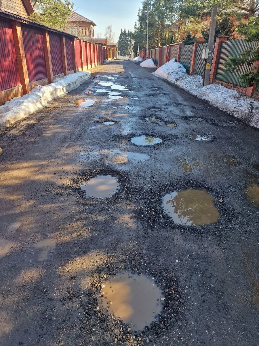 Деревня Терновка, ул. Богатырская, дорога ушла вместе со снегом. Но никакие службы сюда даже не заезжают.
