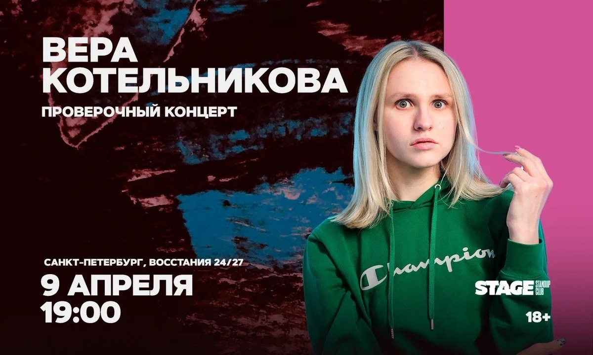 9 апреля 💡 Стендап-концерт «Проверочный стендап-концерт Веры Котельниковой