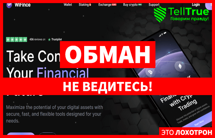 Очередные мошенники пишут «Возьмите под контроль свое финансовое будущее.» и банально обманывают простых людей. Биржа WiFince (wifince.com) была создана аферистами, да бы обманывать пользователей на теме связок по арбитражу крипты. Мошенники продвигают этот проект с целью выманивания денег и, взаимодействия с лохотроном точно ни к чему хорошему не приведет. Полный обзор: https://telltrue.net/eto-lohotron/wifince/
