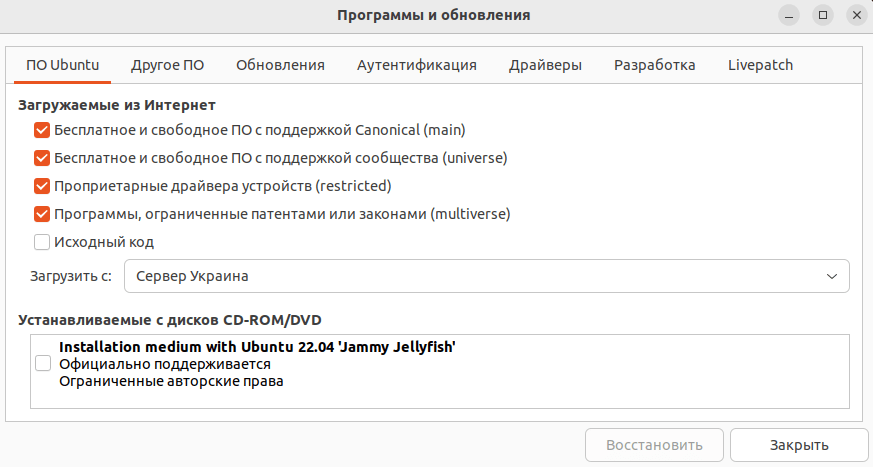 - Main — стабильные версии ПО, официально поддерживаемого Canonical