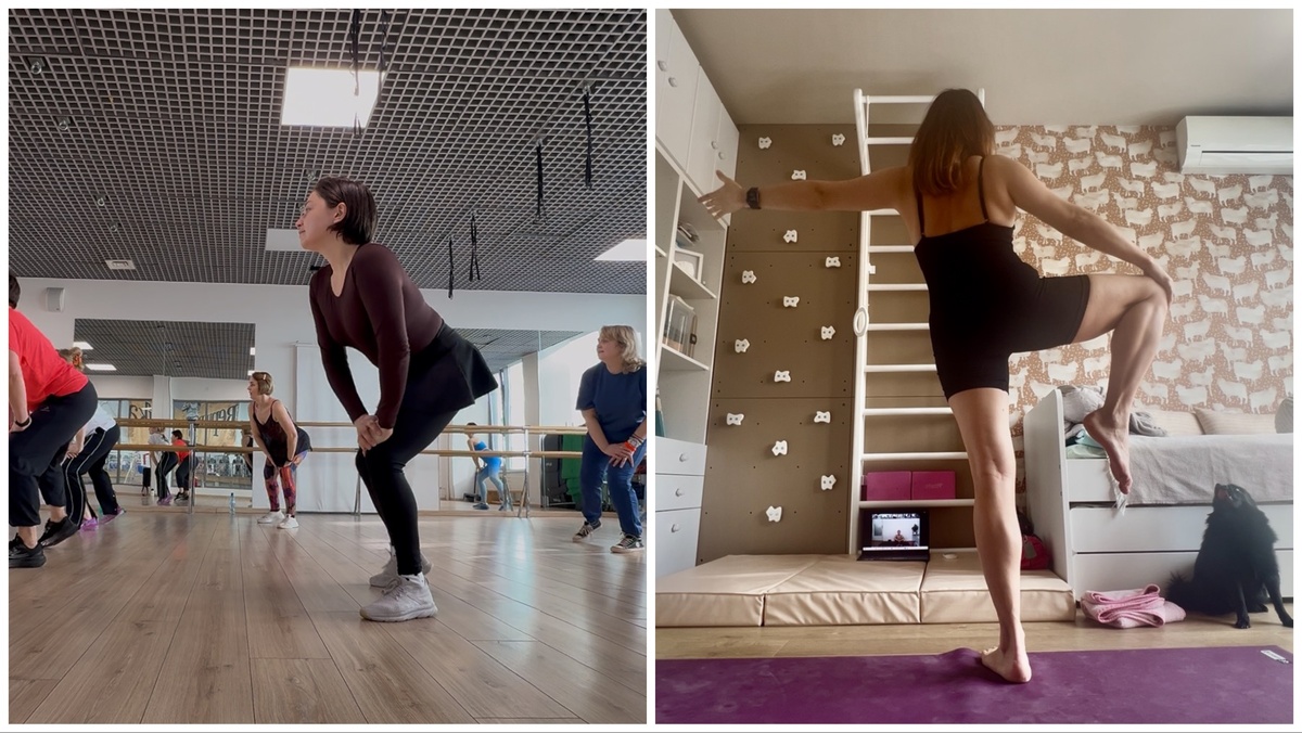 У меня есть дисциплинирующие меня 2 занятия функциональной йогой с тренером онлайн. Дальше для меня в один день это может быть прогулка, в другой — занятие в группе, в третий — бассейн.
