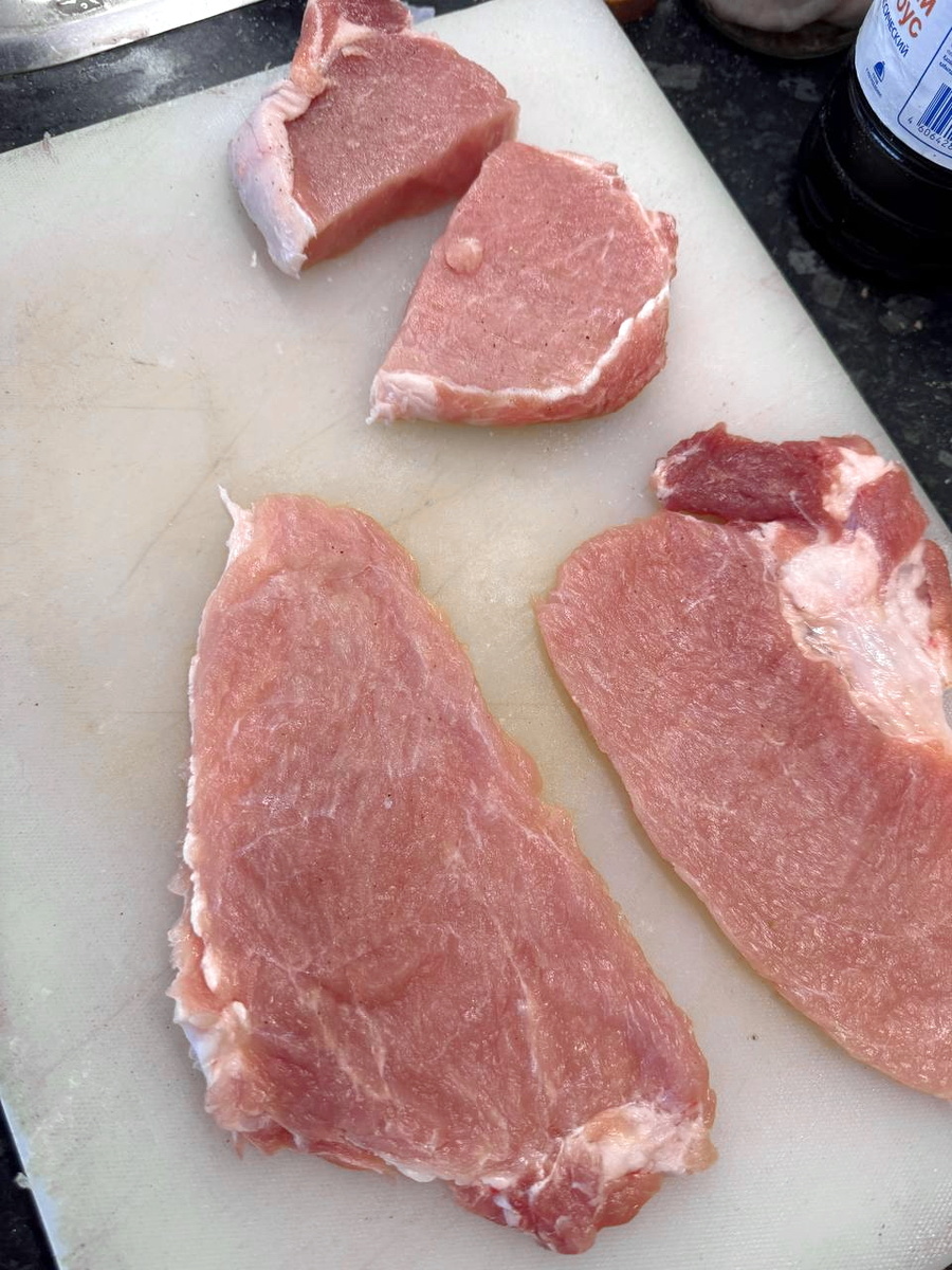 Доброго вам дня, дорогие любители простой и вкусной еды! 😊 Сегодня – про шницель. В этот раз под рукой оказалась свиная корейка на кости. По вкусовым качествам хуже свиной корейки на кости только свиная вырезка, на мой взгляд ) То есть проблема не во вкусе, а в отсутствии хоть какого-то выраженного вкуса. По этой же причине не люблю чалогач, по которому многие сходят с ума. Не учитывая при этом почему-то, что зачастую в общепите – от ресторанов до придорожных кафе – чалогач непременно подают с соусом. А, как говорят французские повара, с хорошим соусом и ремень съешь )) Ну, или не говорят – не суть важно. Однако шницель сделать вкусным все равно реально – всевозможные травушки нам в помощь. И соль с перцем 😊 При этом мясо подойдет от абсолютно любого животного: курицы, утки, индейки, свиньи, коровы, барана, оленя, коня и всего, что мы едим. Мясо свиной корейки, как и говяжьей вырезки, например, при этом как было безвкусным барахлом, так и останется, но если применить фокус с панировк