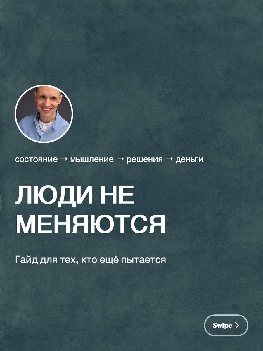 У жизни нет точки прибытия. Есть только путь. Представь: ты стоишь на развилке. Две дороги уходят вдаль — и тебе видны только первые несколько шагов на каждой. Как выбрать? Большинство делают так: пытаются угадать, какая дорога быстрее приведёт к комфорту, безопасности, нужным людям, здоровью, реализации. Пытаются просчитать правильный ответ. Но обе дороги бесконечны. И ни одна из них не обязана привести тебя к этим целям — потому что у них нет такого цели. Вот что я знаю точно. На одной дороге — каждый шаг будет стоить тебе усилия над собой. С первого дня до последнего. Ты можешь пройти её. Многие проходят. И ты получишь всё что хотел. Но она тебя изнасилует На другой — каждый шаг будет ощущаться своим. Это чувствуется совсем по другому, также как когда ты идёшь туда, куда всегда знал Финала нет ни там ни там. Но ты сам выбираешь — как будет ощущаться каждый следующий Со временем твоей целью становится «просто идти», чувствуя каждый шаг