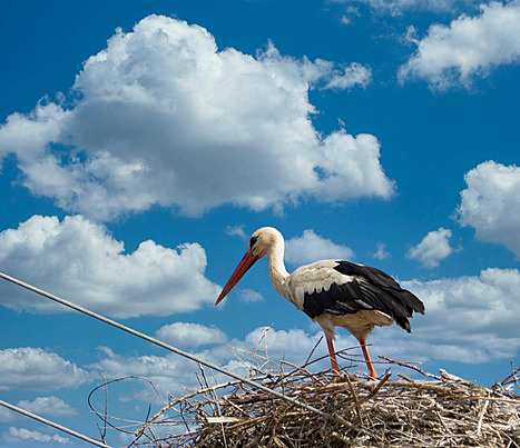 В гнезде сидит величавый аист, а рядом с ним пушистые птенцы, которых кормит прямо из рук сын Василий.