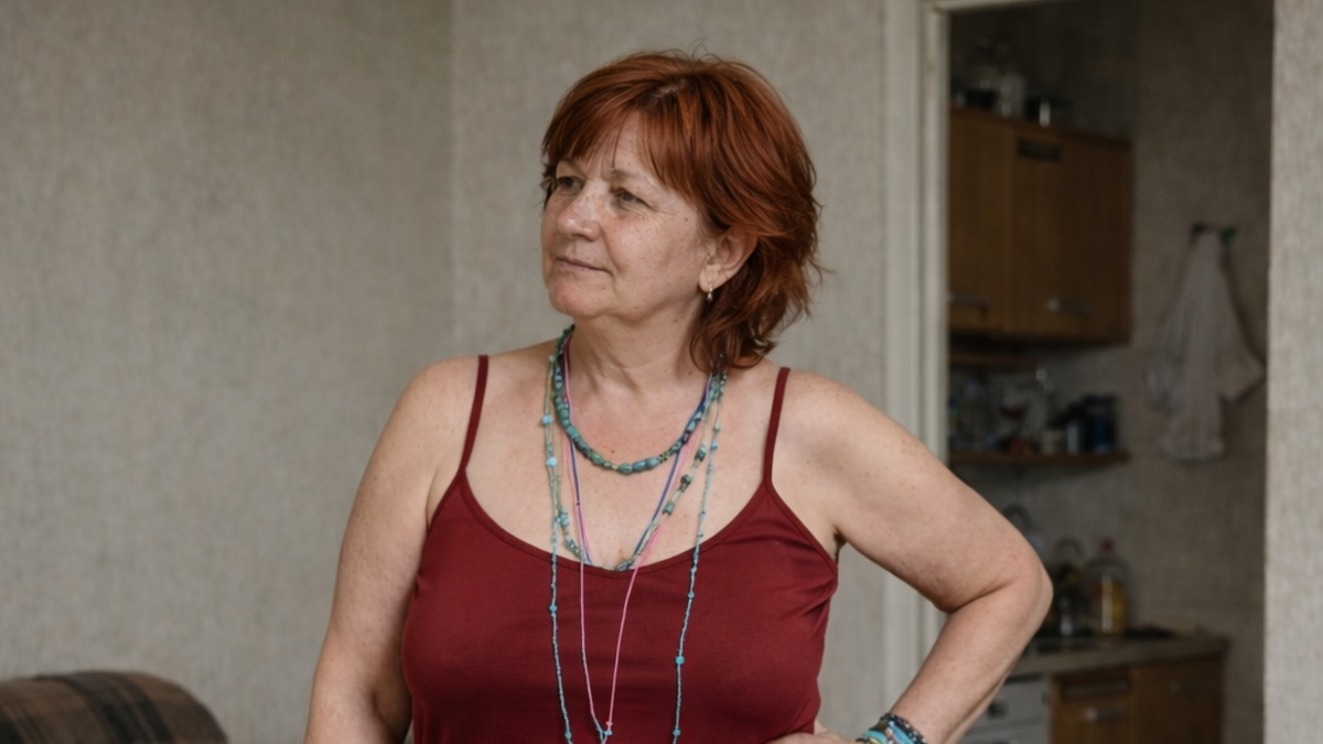 Клетчатая юбка могла бы хоть как-то перехватить ситуацию, если бы у нее был ясный силуэт или более сильная линия. Но нет. Она слишком сухая по характеру и при этом не стройнит. Мелкая клетка выглядит скучно, длина останавливается в тяжелой точке, и ноги сразу кажутся короче. Это не та юбка, которая работает на фигуру. Она не вытягивает низ, не делает образ собраннее, а просто дает еще один слой старомодности.