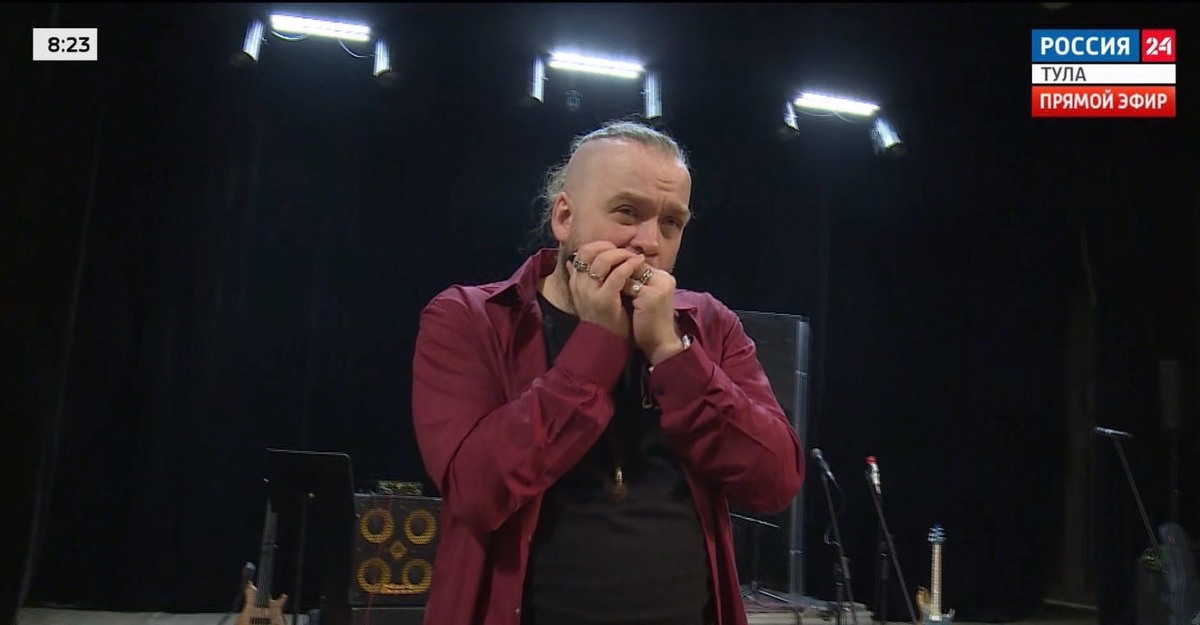 Один из лучших исполнителей на губной гармонике Борис Плотников выступил в Туле с фольклорным ансамблем «Услада». Площадкой для сочетания народной музыки и духового инструмента стала областная филармония. Зачем человеку, который буквально дышит звуками, нужны десятки карманов для одного концерта, расскажем в нашем сюжете. Борису под силу сымпровизировать почти любое произведение. Его музыкальный бронепояс объясняется просто: среди множества видов гармоник разной тональности нужно найти ту самую. Борис Плотников, музыкант: «Это разные инструменты с разным колоритом». Всего в арсенале артиста их 37. У каждого идеального аккорда должен быть запасной вариант, поэтому на сцену Борис выносит минимум 24 губных инструмента. Играть с гармоникой на одном дыхании начал ещё в детстве. И степень любви к ней понятна без слов: имя главной музы прочно обосновалось не только в его душе, но и на языке. Борис Плотников, музыкант: «На каждой перемене я доставал губную гармонику и занимался, занимался, зан