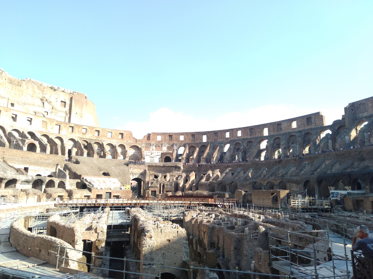 Было первое воскресенье месяца в Риме все музеи работают бесплатно. Я пошла в музейный комплекс, который включает Колизей и Форум. Очередь к кассам Колизея была огромной (нужно получить бесплатные билеты), и билет действует и на Колизей, и на Форум. Поэтому можно поступить так: взять билет в кассе Форума, сначала пойти туда, а потом пойти в Колизей с уже полученным билетом (для тех, у кого есть билеты, есть отдельная очередь). Вокруг очереди люди продают воду за 1 евро. Если вы хотите пить, но у вас есть бутылка, просто подождите, пока окажетесь внутри. Там есть бесплатные питьевые фонтанчики.
