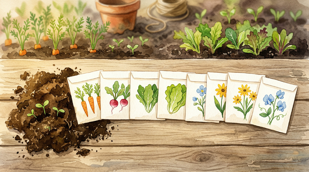 Апрель — и руки уже чешутся выйти на грядки. Но что можно сеять в открытый грунт прямо сейчас, а что ещё рано? Ошибиться легко: посеешь теплолюбивые культуры раньше времени — семена сгниют в холодной земле, и придётся сеять заново. В этой статье — восемь культур, которые смело идут в апрельскую землю, с конкретными сроками и глубиной посева. В апреле сеем только холодостойкие культуры. Это растения, которые прорастают уже при температуре почвы +5–8°C и спокойно переживают возвратные заморозки до -3–5°C. Они не просто выживают на холоде — они его предпочитают. Многие из них при слишком раннем тепле уходят в стрелку, поэтому апрель — их идеальное время. Прежде чем сеять, измерьте температуру почвы: воткните обычный градусник на глубину 10 см и подождите 5 минут. Если показывает +5°C и выше — можно начинать. 1. Морковь Срок: начало апреля (при почве +5°C). Глубина посева: 1–2 см. Схема: 3–4 см между семенами в ряду. Совет: морковь прорастает медленно — 10–20 дней. Не пугайтесь тишины с гр