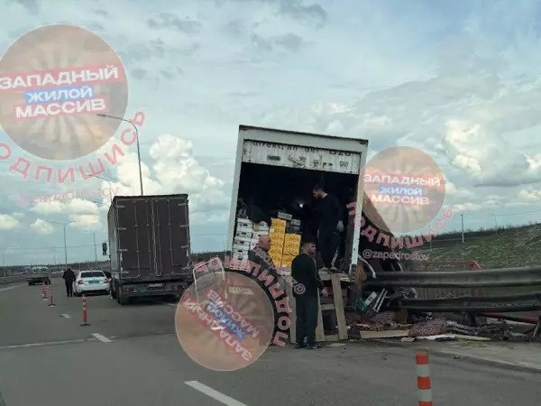 На выезде из Ростова размотало грузовик с овощами