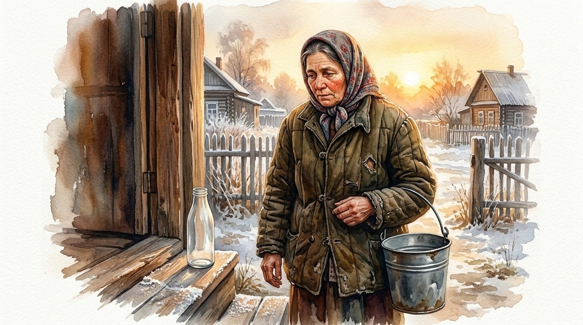 Михаил лежал на кровати, укрытый старым тулупом. Сапоги стояли у порога, на газетке. Рядом — такая же бутылка, которую она видела снаружи. Пустая, вымытая. Он всегда мыл бутылки, прежде чем выставить. Будто это могло что-то изменить. Будто если бутылка чистая, то и греха нет.