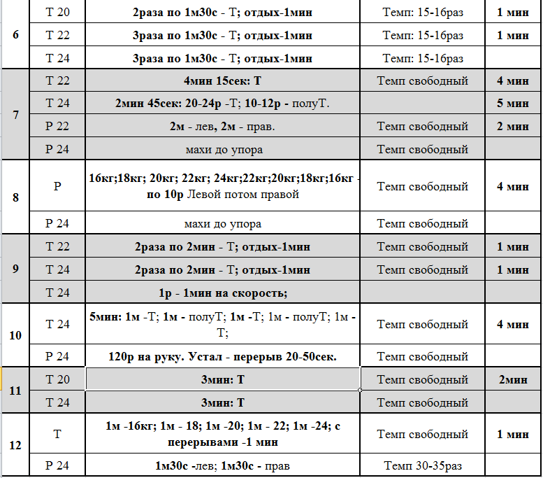 Продолжение предыдущего поста. Тренировки с 7-й по 12-ю. Мож кому пригодиться. Если самсусам, то проходи мимо, не задерживайся. Скоро отредактирую еще пару комплексов посложнее и с ДЦ. Тож выложу.